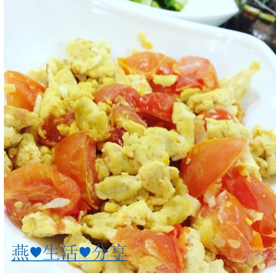 再來就是孩子最喜歡的番茄滑蛋,和蒜炒青菜。